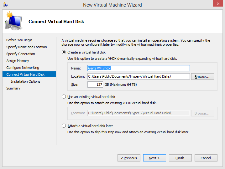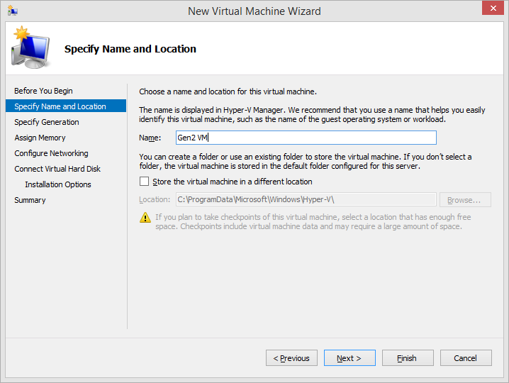 Let’s take a look at what is required to create Gen 2 VM, and then take a look at some of the differences between Gen 1 and Gen 2 VMs.