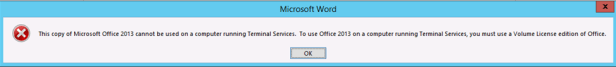 And this, my friends, is the end result, and the proof that you can’t run Office 365 under RDS. So it’s not just a licensing restriction, there’s definitely a technical restriction in place as well.