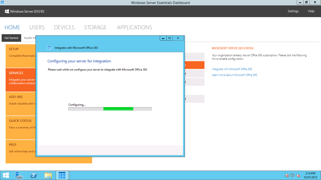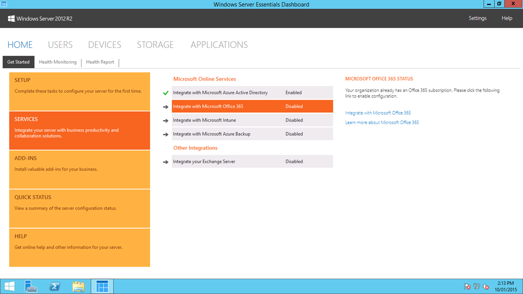 In yesterday’s post I introduced the integration of Microsoft Online Services into Essentials and started off by enabling Microsoft Azure Active Directory Integration, and today I’ll run through the process for enabling Office 365 integration.