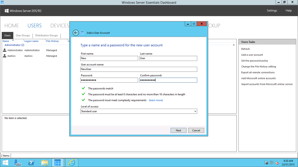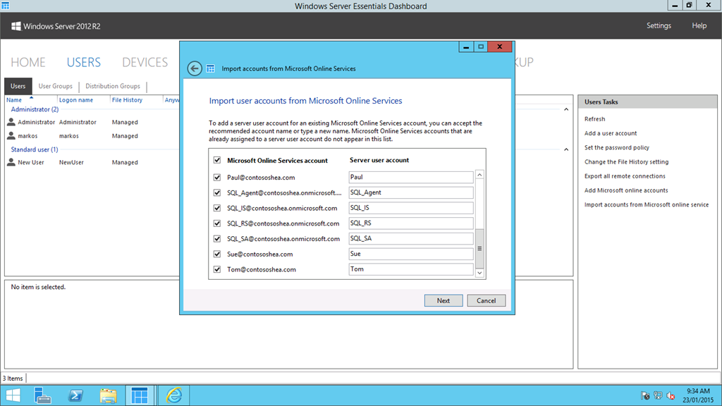 In the previous posts in this series I enabled the integration of the Essentials Dashboard with Azure AD, Office 365 and Windows Intune, so now it’s time to take a look at how this integrations with the user account experience. As with most things related to Essentials, all we need to do is jump into the Dashboard and we can see what it is capable of delivering.