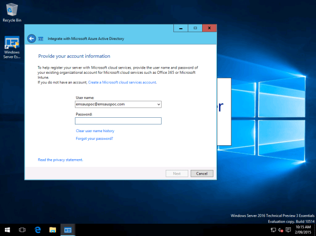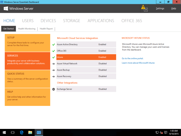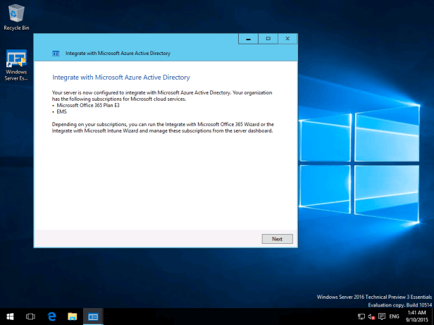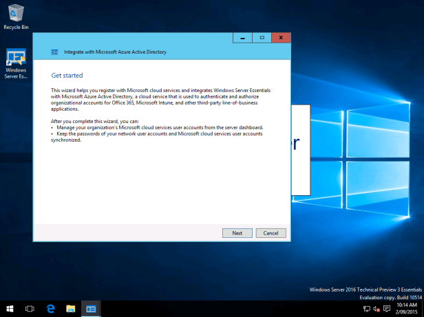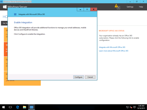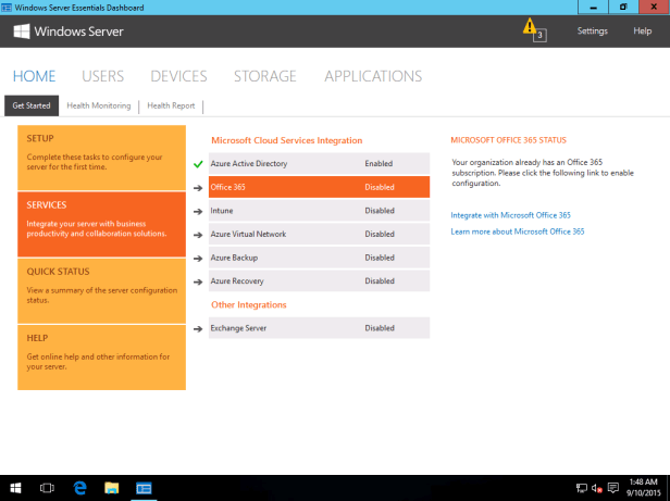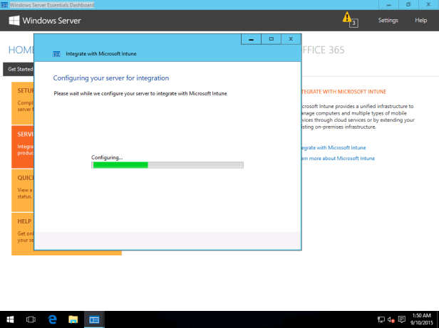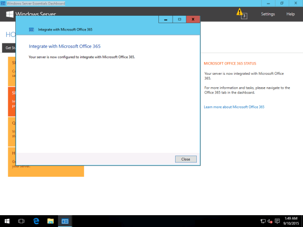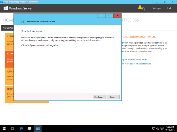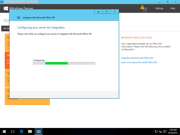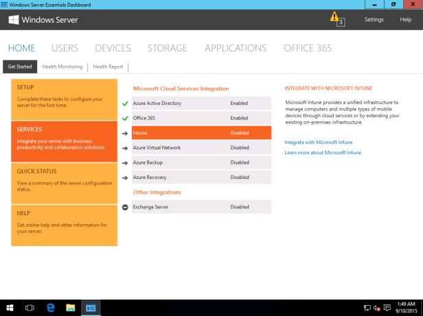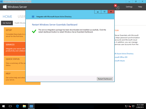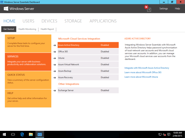 In the last post I gave an overview of some of the Essentials capabilities, now it’s time to start looking a bit more closely at the Microsoft Cloud Services Integration features.