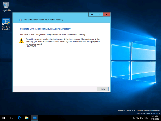 Now we need to restart the server to allow on-premises synchronisation with Azure Active Directory.