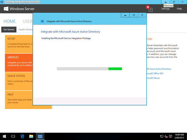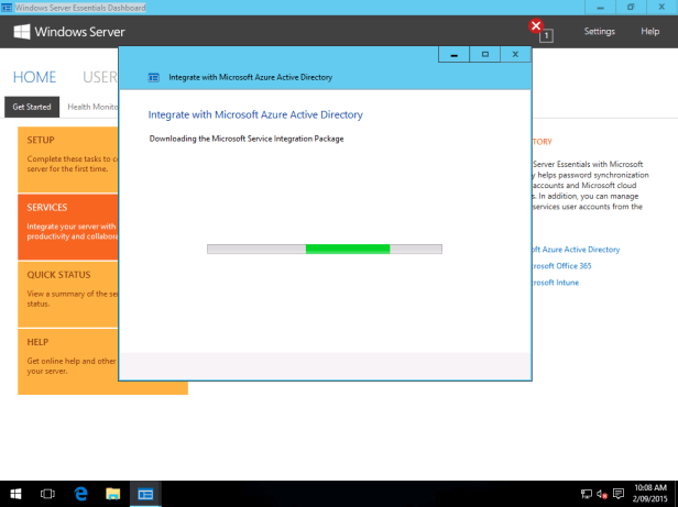 The first thing that Essentials does is download the Microsoft Service Integration Package, making sure that you have the latest package to ensure you can connect to the ever progressing online services offerings. This isn’t a very large download, so it should be pretty quick.