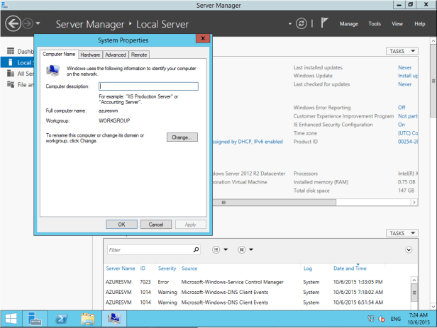 In the next post I’ll revisit some of the things you can do inside of Server Manager once you have the connection established, which isn’t really related to Azure Virtual Networking integration feature, just more of a refresher of what you can do inside of Server Manager.