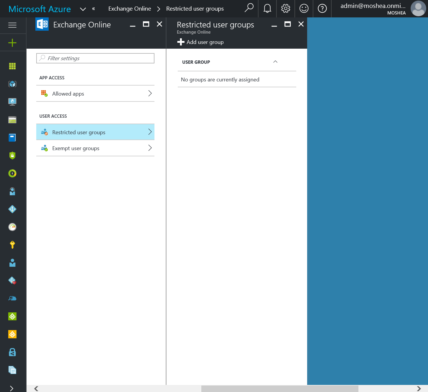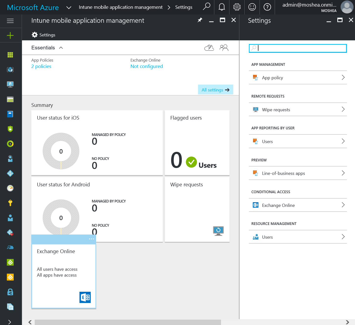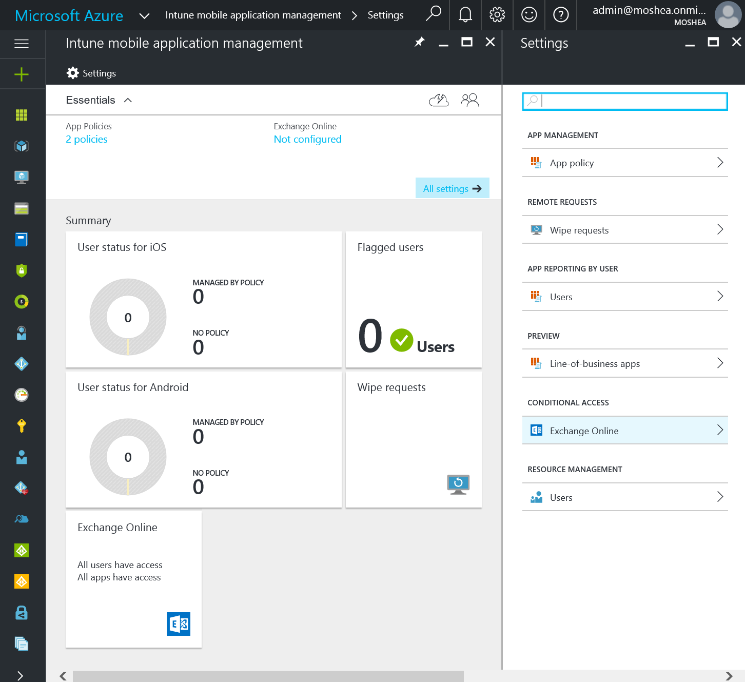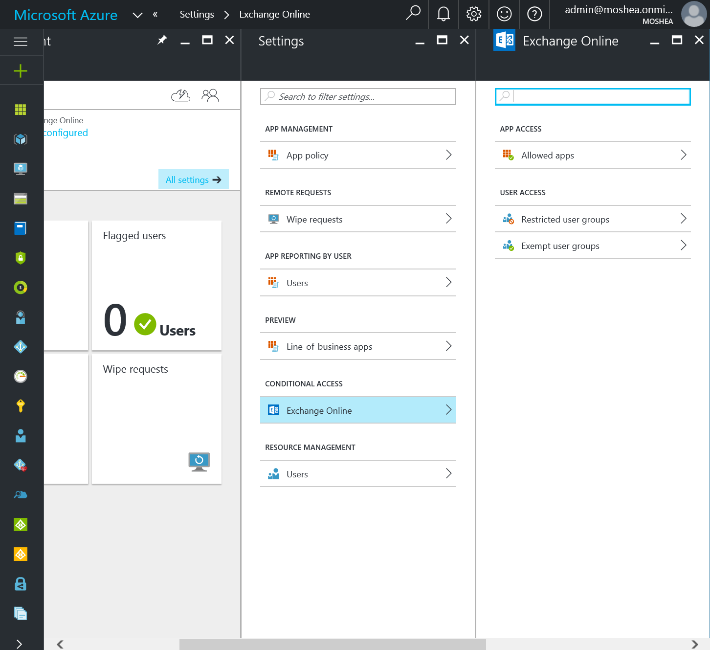 Alternatively, if you customise it and hide the tile, you have the Exchange Online link underneath Conditional Access on the right.
