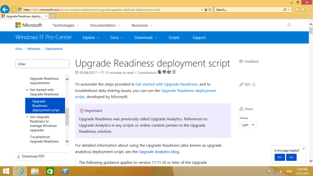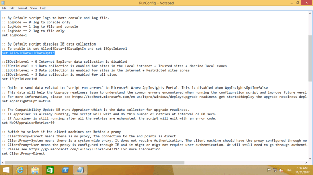 Now that we’ve covered the basics of targeting, head to https://docs.microsoft.com/en-us/windows/deployment/upgrade/upgrade-readiness-deployment-script to download the script and save it locally.