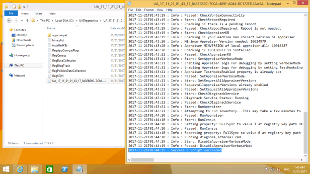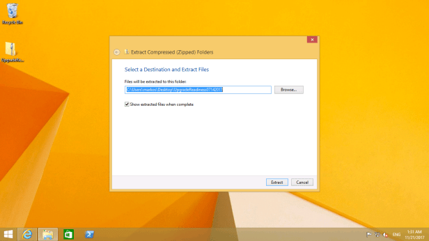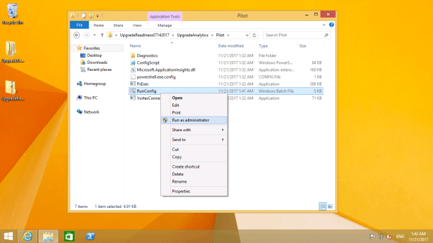 After downloading the Upgrade Readiness Deployment Script to one of the PCs, extract its contents.