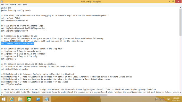Following on from the last post which was an introduction to the Windows Analytics Upgrade Analytics solution in Operations Management Suite, today’s post is on collecting data from your Windows 7 Pro and Windows 8.x Pro devices. For this post I will be using the Pilot version of the Upgrade Readiness Deployment Script to collect data from a couple of PCs rather than using an automated deployment option.