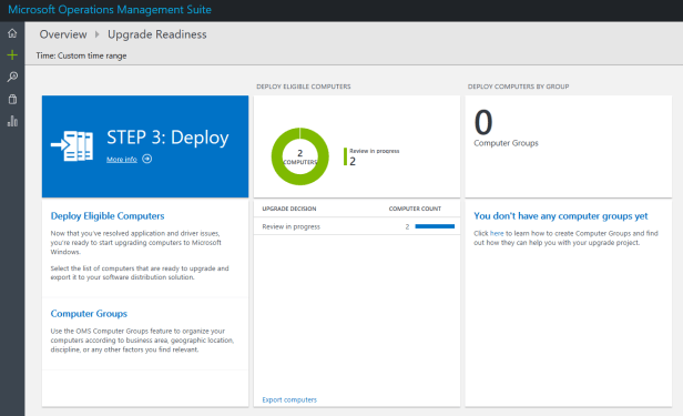 Step 3: Deploy shows that our 2 PCs are currently in the review process, and that we can also create Computer Groups to more easily identify them.