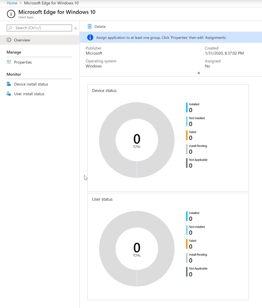 Once this is done you will need to go assign Edge to users or devices, and whether to make them Assigned or Required.