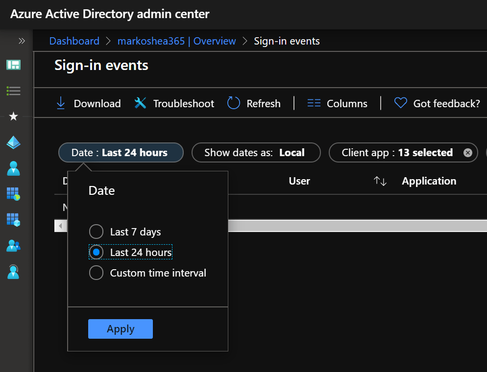 The sign in events provides seven days worth of sign-in logs, so you can now see this at the tenancy level as opposed to a user by user basis.